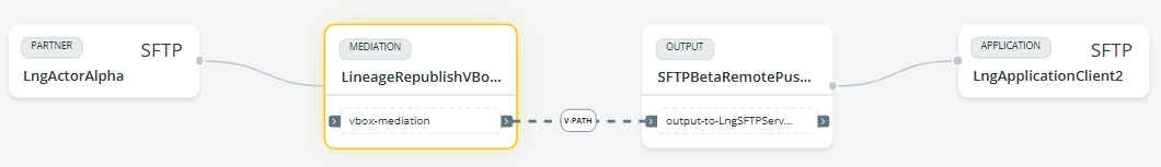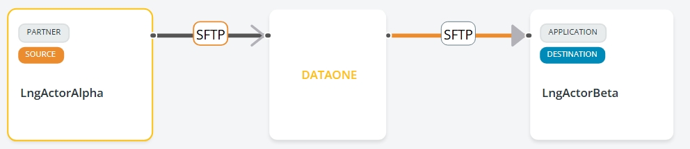 The SFTP chip on the left (input) has an orange arrow in the output. Clicking on the SFTP output will take you to the most detailed level, where you can see the flow and its configuration.