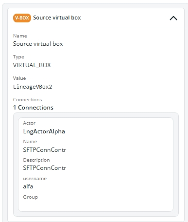 You can click on the Source virtual box link to expand the panel and see the details of the Virtual Box together with its connection: