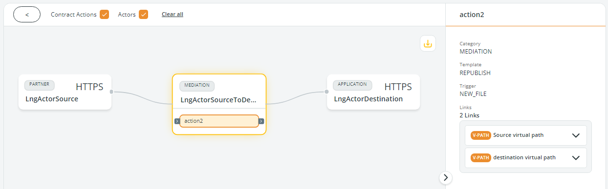 By clicking action1 in the lower part of the box, the Category, Template, Trigger, and links of the contract connection, with all the details, are shown.
