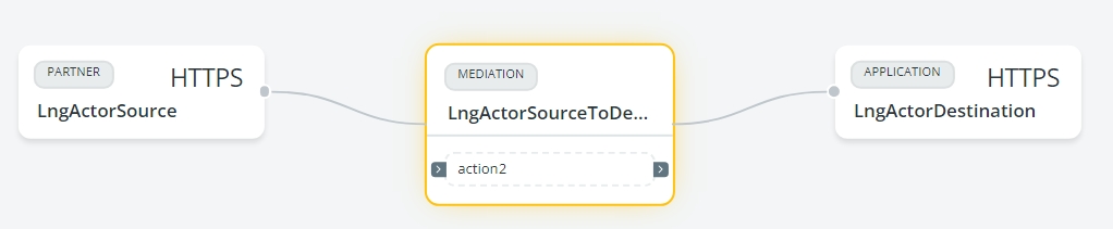 The HTTPS chip on the left (input) has an orange arrow in the output. Clicking on the HTTPS output will take you to the most detailed level, where you can see the flow and its configuration.