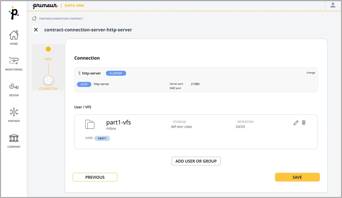A Contract Connection to an HTTP server must exist and the User must have access to the VFS of the Partner.