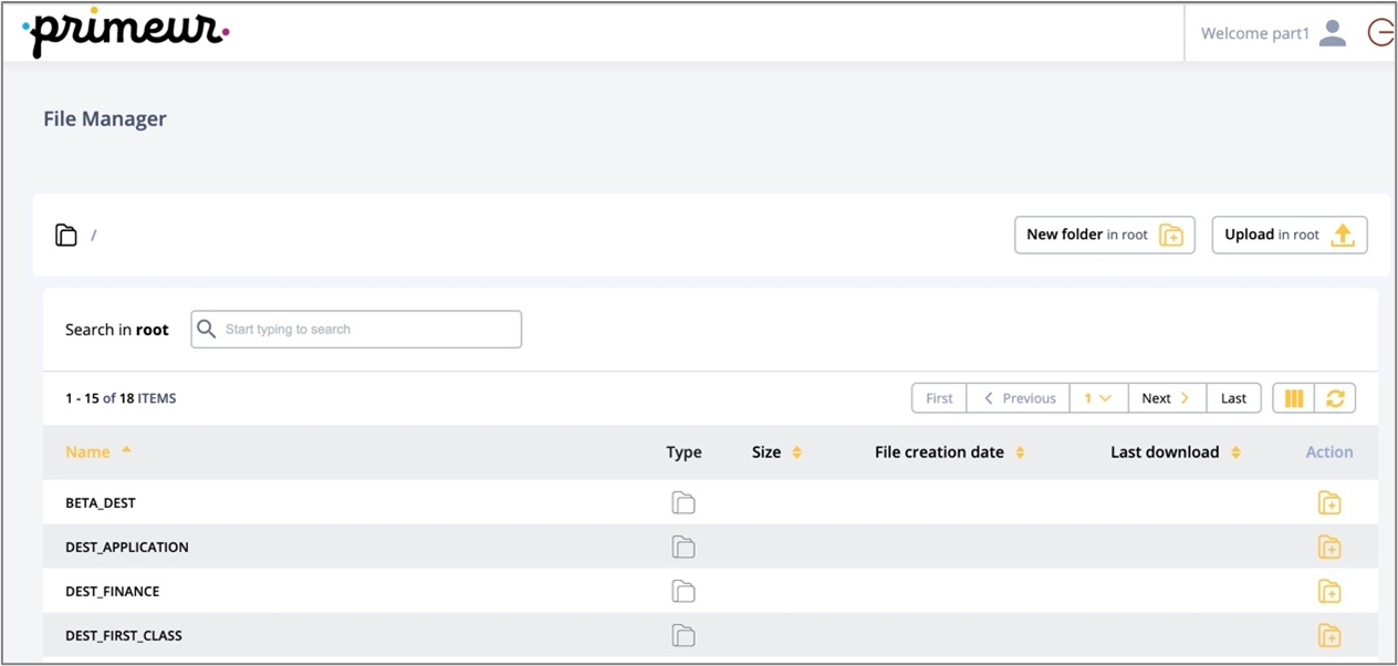 To add a folder to the root, click the New folder in root option at the top of the screen.