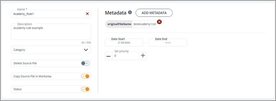 Let’s start by creating a rule that acts on the testAcademy1.txt file.