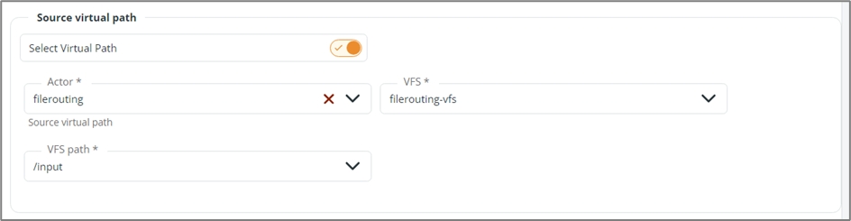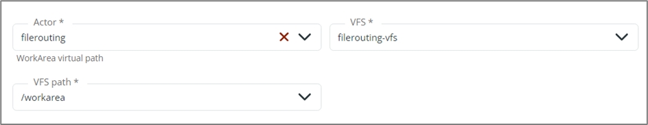 The Actor, VFS and VFS path of the workareaPath virtual path must be those of the file routing.