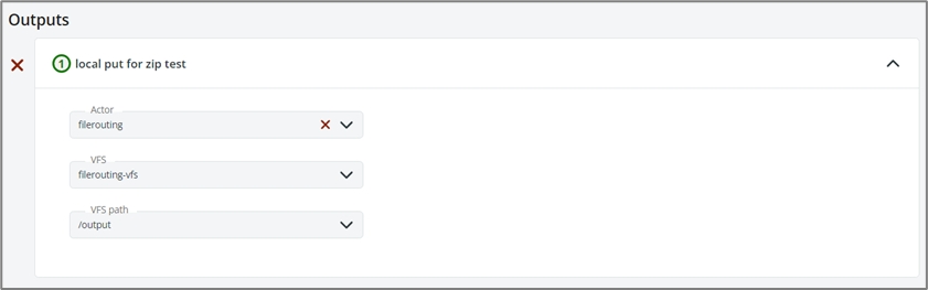 As output, we want the file to be copied to a VFS called filerouting-vfs, path /output.
