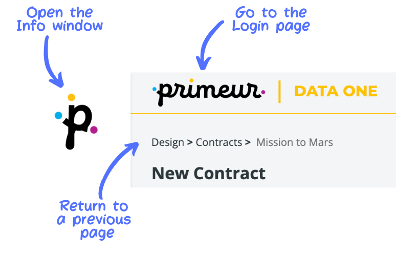 logo on the left of the screen gives you access to the Info section of Data One with information useful for our lovely geek friends.