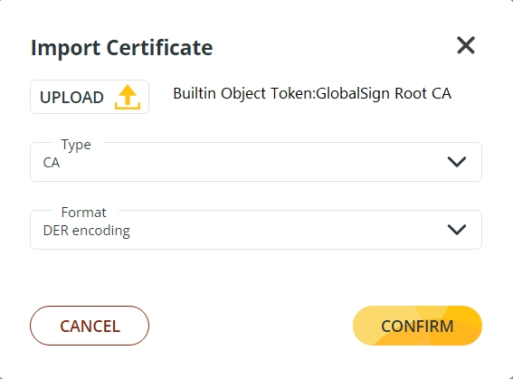 Browse your local disk to identify the Builtin Object Token:GlobalSign Root CA certificate.