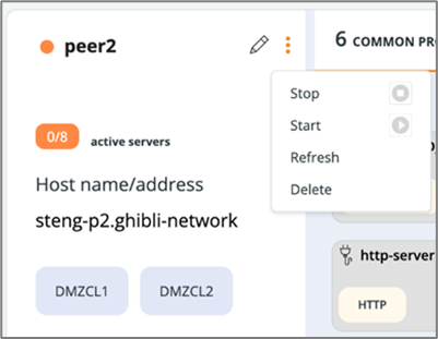 If, for any reason, not all servers of the peer can be stopped, a Refresh option will appear. In this case, the STENG status will be shown in orange.
