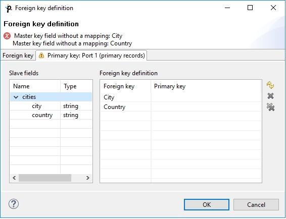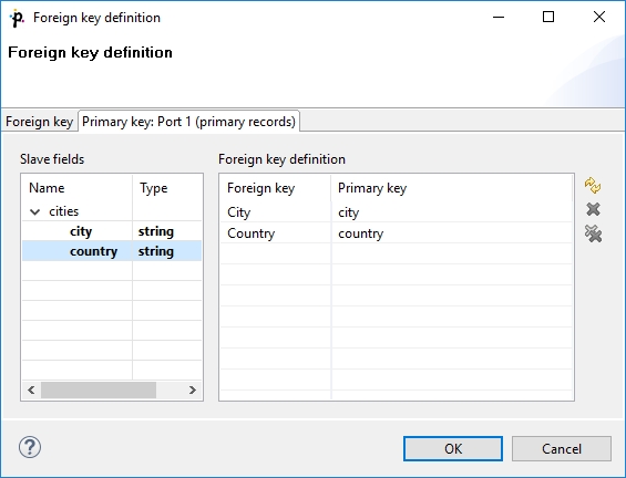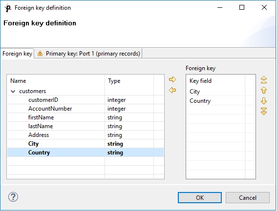 When you switch to the Primary key tab, you will see that the selected foreign fields appeared in the Foreign key column of the Foreign key definition pane.
