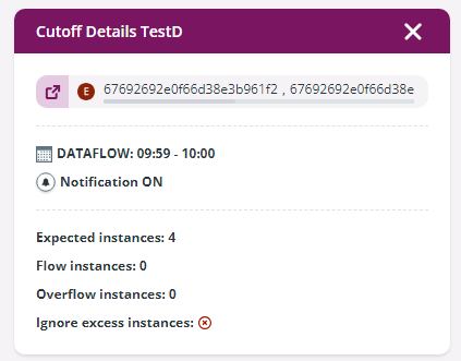 When the cut-off evaluation delay is set in planned cut-offs, an hourglass icon will appear on the status icon on the Cut-off board to warn the user that the specific dataflow has an evaluation delay set. To give an example, the Error status will be represented in this way: