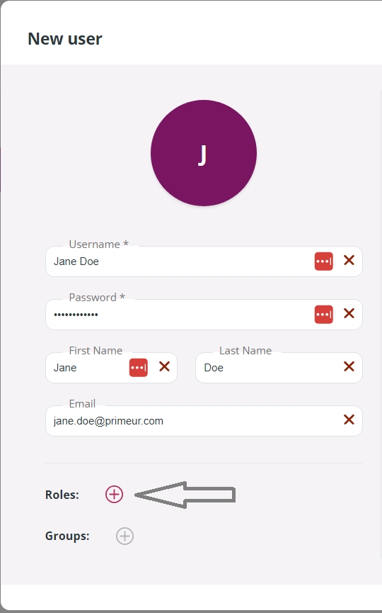 In the Add Roles window, identify the role you want to assign to the user and click the + button on the right.
